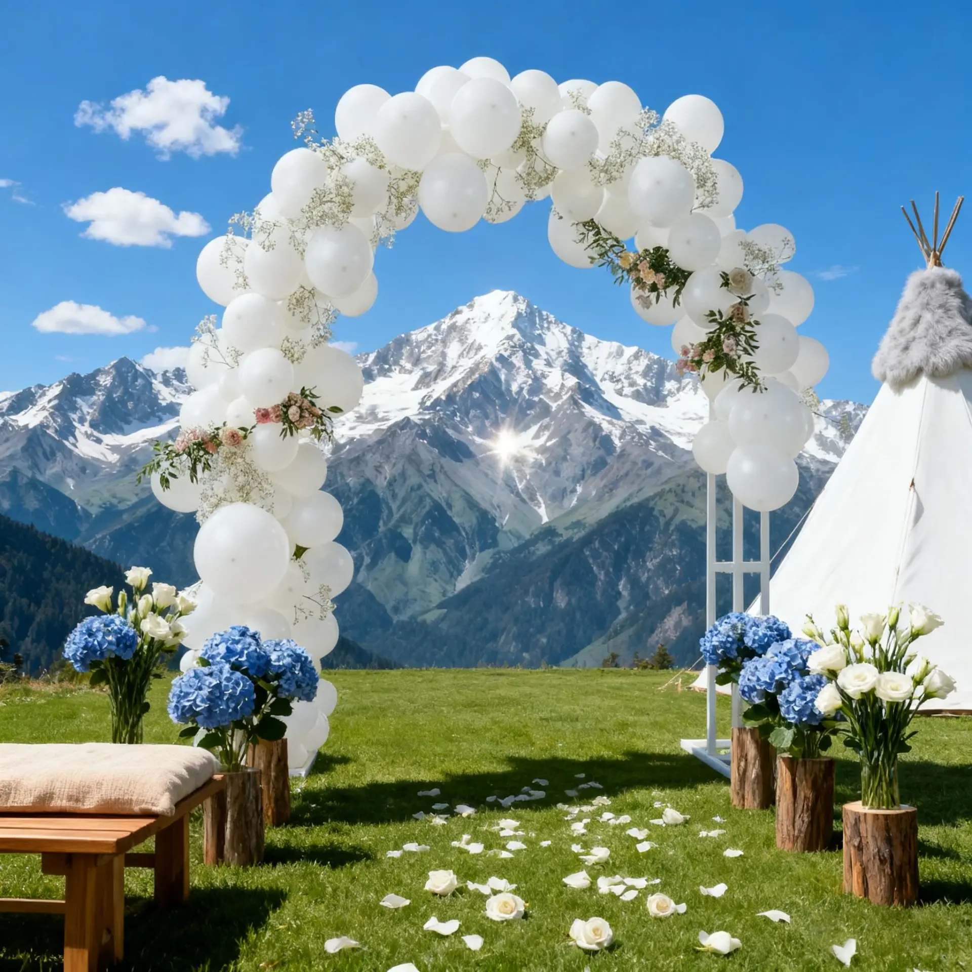 Placez votre arche en position stratégique : devant l’autel pour une cérémonie religieuse, face à la mer pour un mariage plage, ou au centre du jardin pour une union en plein air. Pensez à l’orientation pour profiter du meilleur éclairage naturel lors de votre cérémonie.