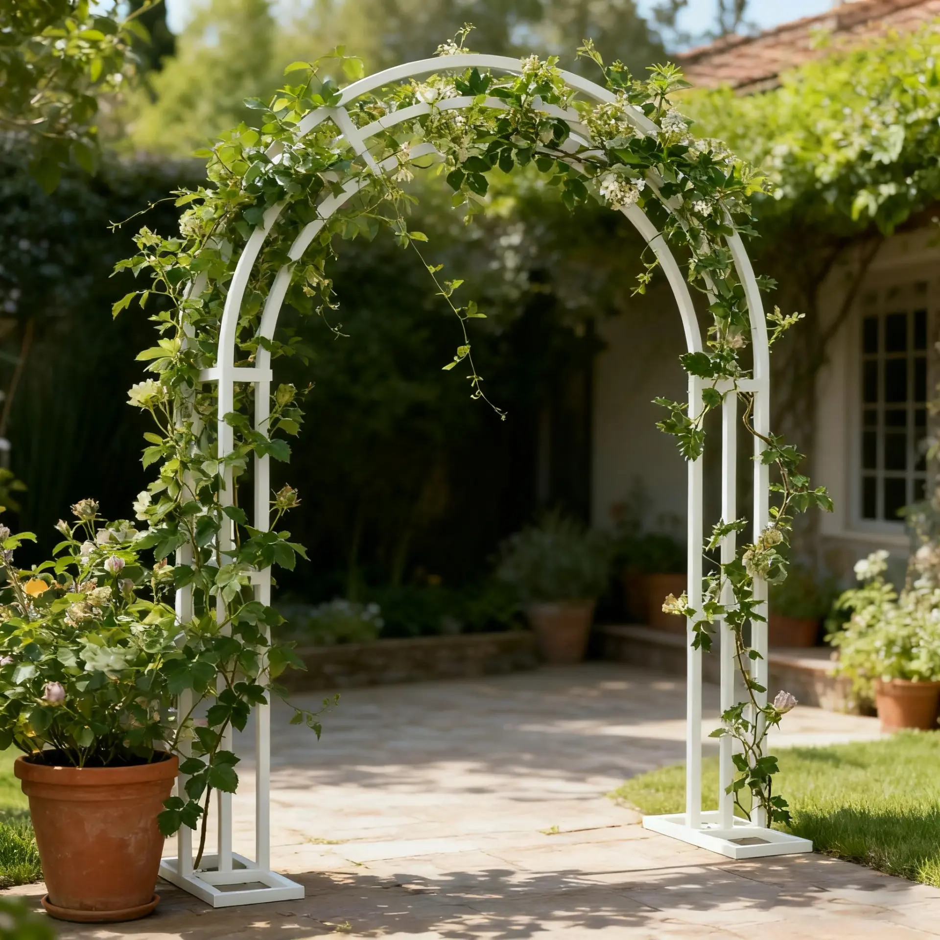 Les wedding planners adorent ce modèle pour sa polyvalence décorative. Vous pouvez y accrocher des guirlandes de roses, des cascades de glycines artificielles, ou simplement quelques branches d’eucalyptus pour un style bohème.