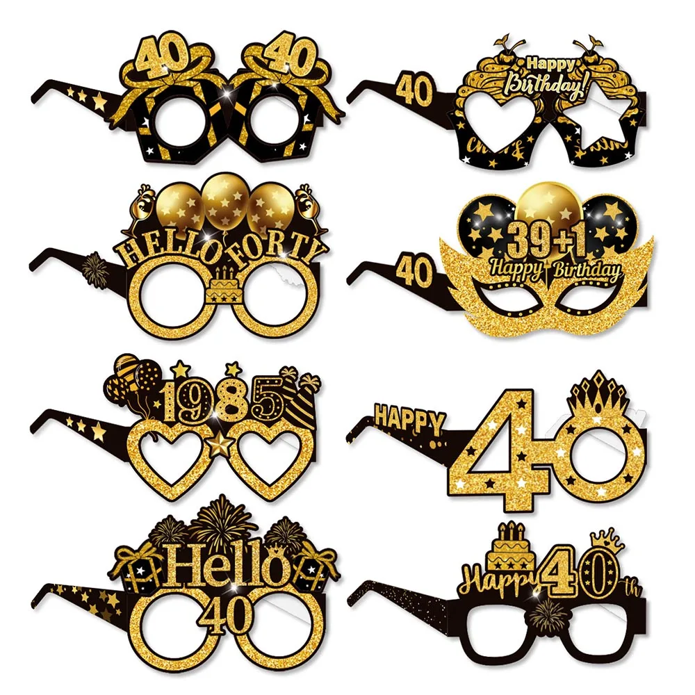 Prêt à donner le ton de la plus belle des fêtes ? Commandez votre lot de 8 lunettes noires et dorées et faites de cet anniversaire de 40 ans un moment visuellement et émotionnellement mémorable.